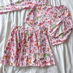 Designed for comfort, play and endless spinning, this two-piece set features a long-sleeve top paired with a super swishy skirt — complete with built-in shorts for carefree cartwheels, dancing and playground fun.